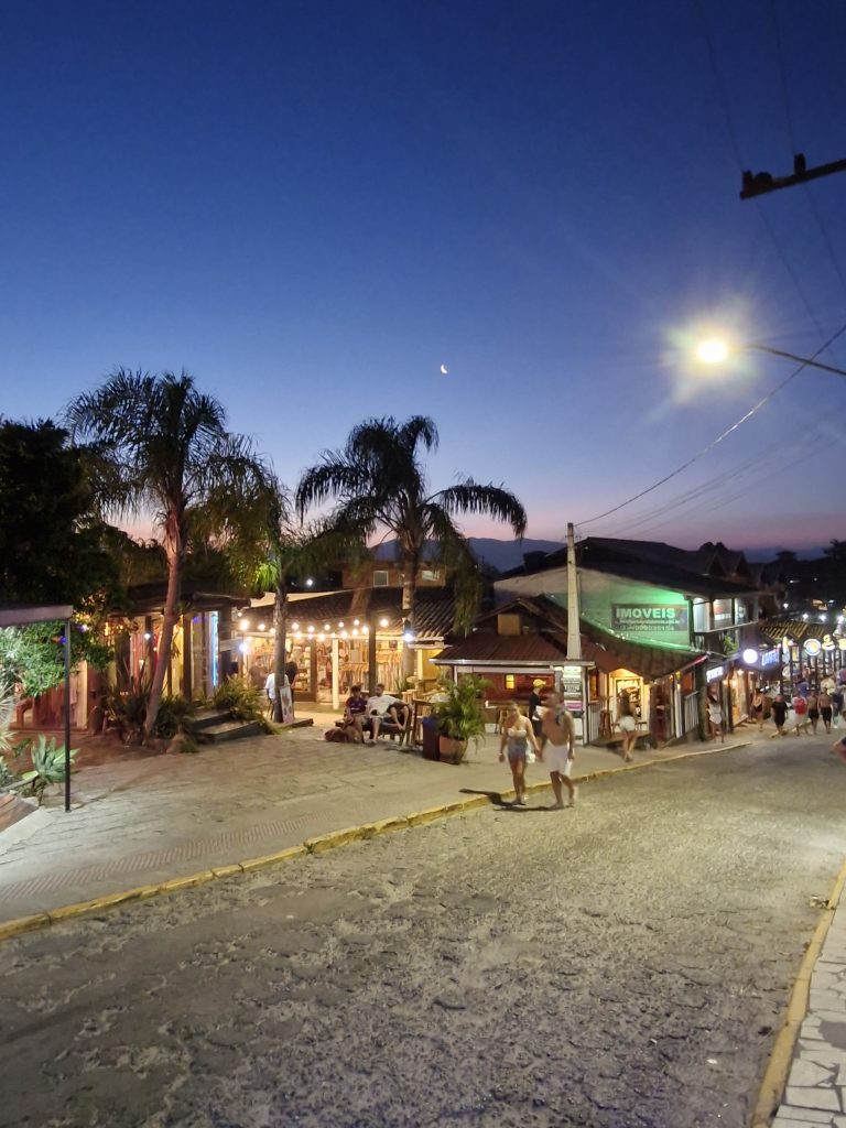 É no centrinho que o dia continua após a praia: sabores variados, música, encontros e aquele ritmo leve que convida a caminhar sem pressa. Seja para um café no fim da tarde, um jantar especial ou simplesmente para sentir o clima do lugar, o centrinho da Praia do Rosa traduz o estilo de vida simples, autêntico e vibrante que faz do Rosa um destino tão especial. No centrinho da Praia do Rosa, sempre há algo para fazer, seja de dia ou à noite.